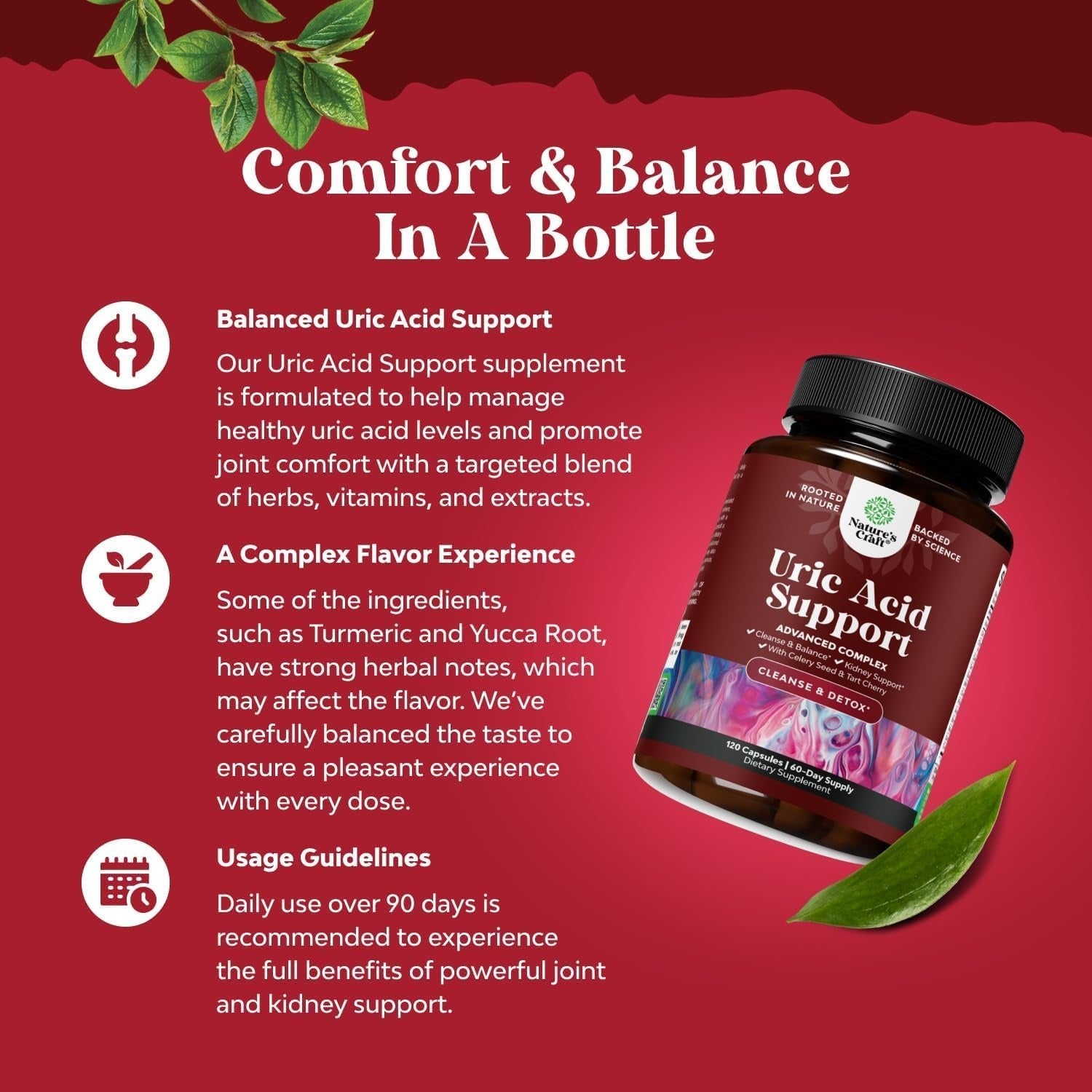 - Our uric acid support formula with green coffee extract helps maintain healthy uric acid levels, easing discomfort in joints, hands, feet, and muscles. This uric acid supplement also supports kidney function for optimal detox.
